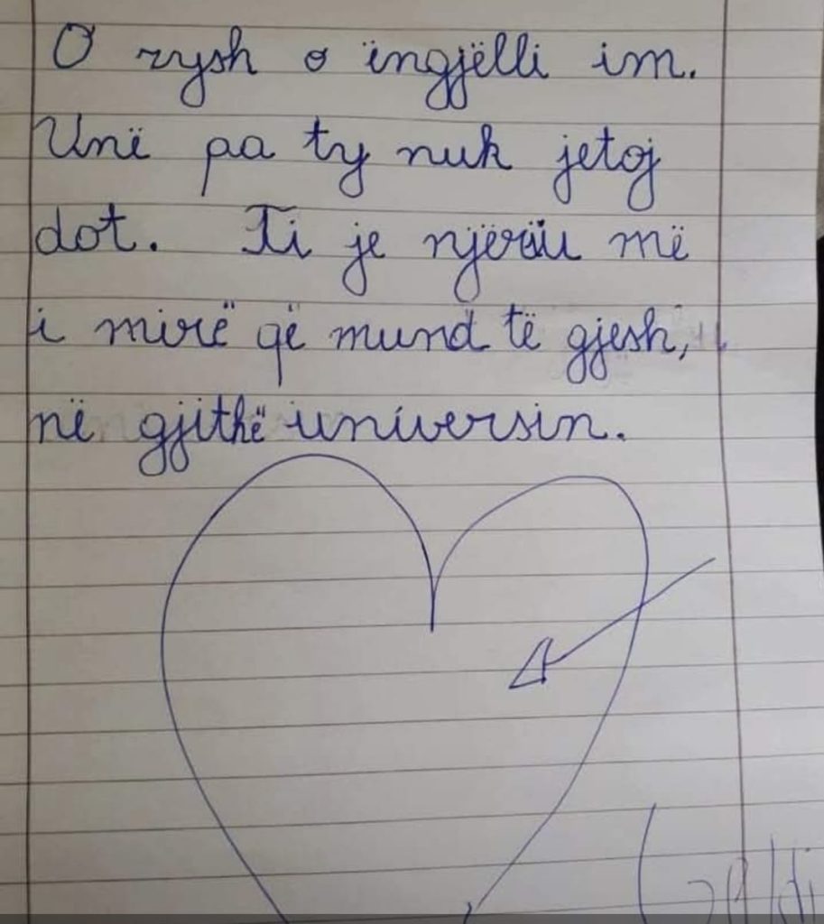Në vazhdim e gjeni edhe një letër plot dashuri, që një nxënës i vogël e shkroi për mësuesen Suela Kaja.