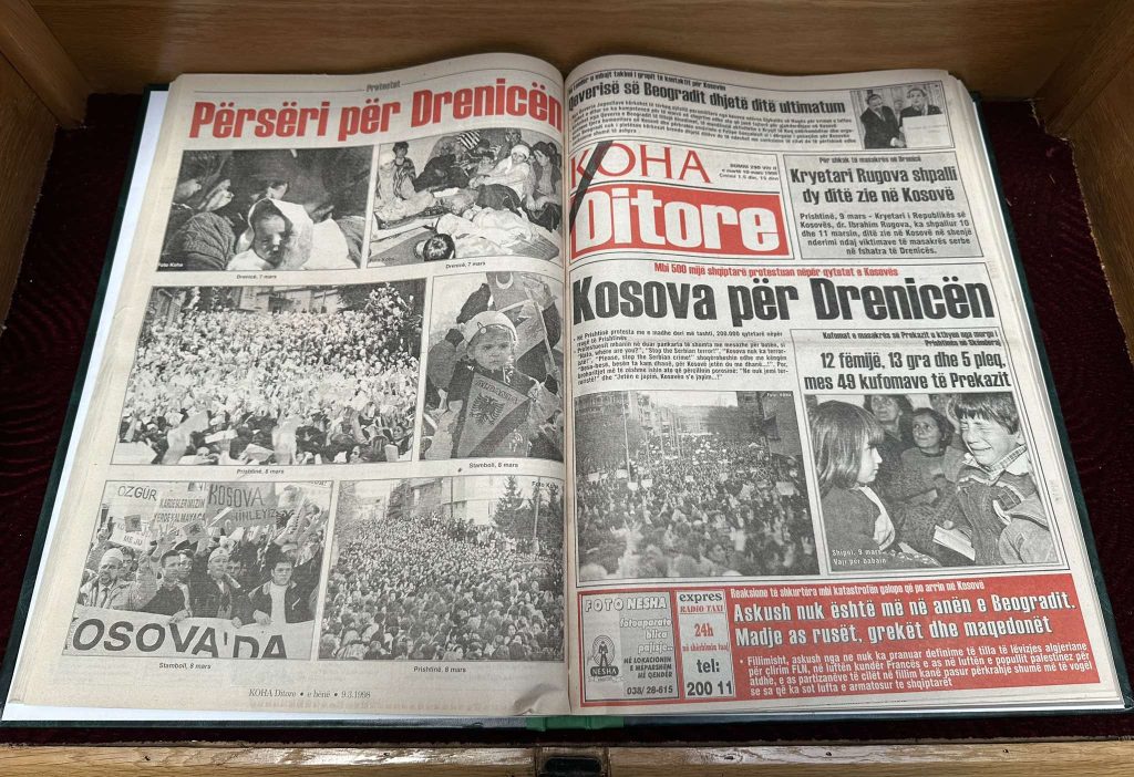 Në këtë ekspozitë janë paraqitur materiale nga fondi i Bibliotekës, gazeta të periudhës dhjetor 1991-mars 1998.