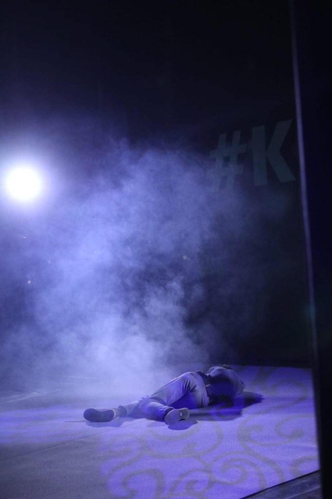Një djalë 12-vjeçar shtrihet i heshtur në skenë, ndërsa audienca endet mes rreshtave duke kërkuar vendet e tyre. Në krahun e majtë, një grua me vështrim të humbur qëndron e palëvizur—më vonë zbulohet se ajo ka humbur djalin e saj gjatë emigrimit.