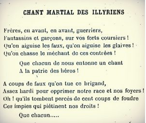 Në librin e autorit dhe kryemurgut francez, Pierre Bauron, me titulli “Les Rives Illyriennes – Brigjet Ilire”, botuar në Paris në vitin 1888, gjejmë, në faqen e 350, një këngë të rrallë luftarake ilire...