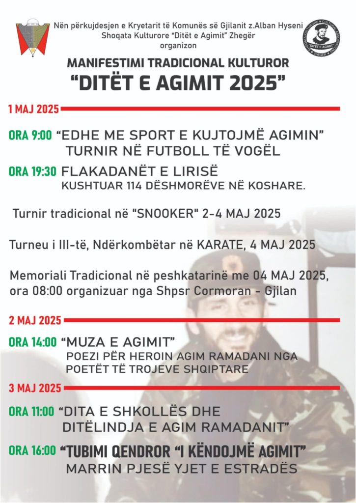 Ky manifestim përfshin një sërë aktivitetesh përkujtimore, sportive dhe kulturore në nderim të heroit kombëtar Agim Ramadani.