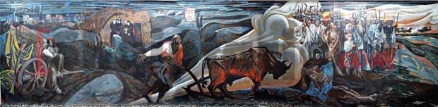 Vepra thyente të gjitha kanonet e artit të Realizmit Socialist. Me një shtrirje mbi 15 m gjatësi dhe rreth 3.5 m lartësi lindte në atë mur një vepër e cila do të sillte frymën e re të artit modern.