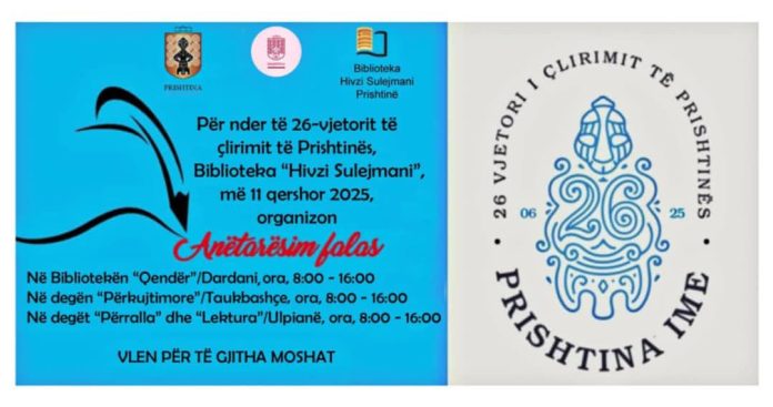 “Regjistrimet bëhen në objektin e bibliotekës në Dardani, si dhe në degët në Ulpianë dhe në Taukbashçe nga ora 08:00 – 16:00”, u bë e ditur nga kjo bibliotekë.