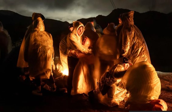 Në Night Crossing, emigrantët kinezë ngrohen gjatë një shiu të ftohtë pasi kanë kaluar kufirin SHBA-Meksikë
