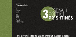 Nga 21 deri më 23 nëntor mbahet Festivali Poetik i Prishtinës, organizuar nga Portali për Kulturë, Letërsi dhe Art, ObserverKult.
