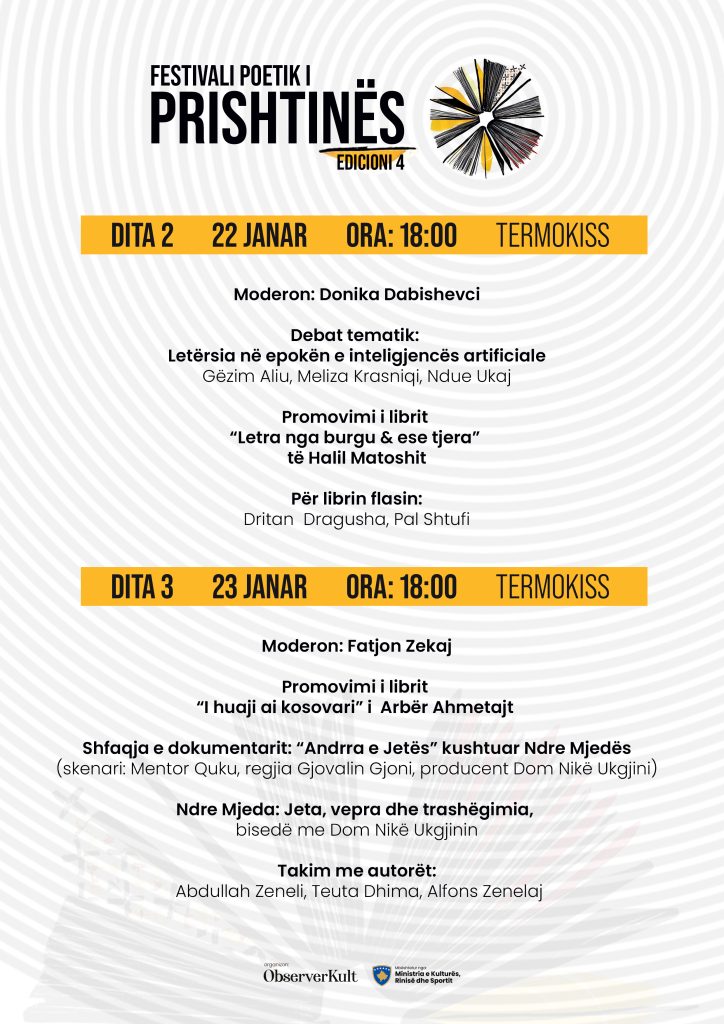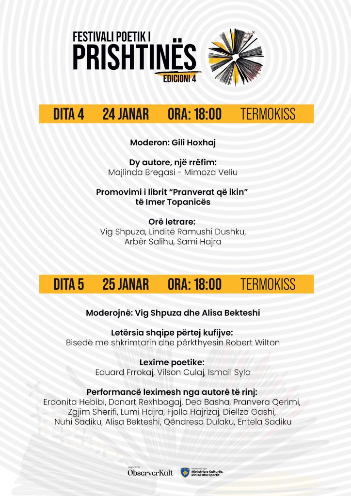 Nga 21 deri më 25 janar mbahet Festivali Poetik i Prishtinës, edicioni IV, organizuar nga Portali për Kulturë, Letërsi dhe Art, ObserverKult.