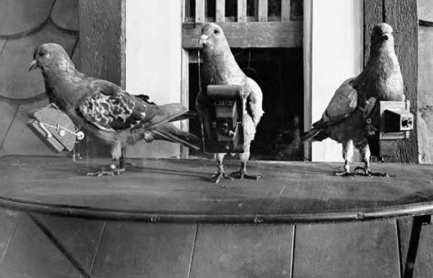 Pajisja ishte pikërisht një aparat i vogël, pajisur me rripa me një kohëmatës, në mënyrë që pëllumbat të mund ta mbanin dhe të bënin fotografi gjatë fluturimit.